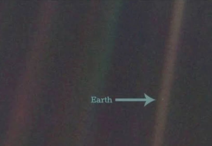 Carl Sagan's famous "Pale Blue Dot" refers to a photo of Earth taken by Voyager 1 in 1990, showing our planet as a tiny speck, from which Sagan wrote a profound reflection on humanity's place in the cosmos, emphasizing shared responsibility to care for our "only home" amidst vastness, challenging our self-importance